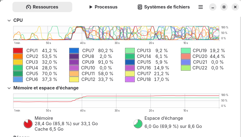 Après quelques essais, c’est chouette, mais ce n’est pas encore le futur! Déjà ça va pousser les « vieilles » machines dans la tombe et accentuer la fracture numérique. Ici une requête sur le modèle GPT-OSS occupe pas mal ma machine.